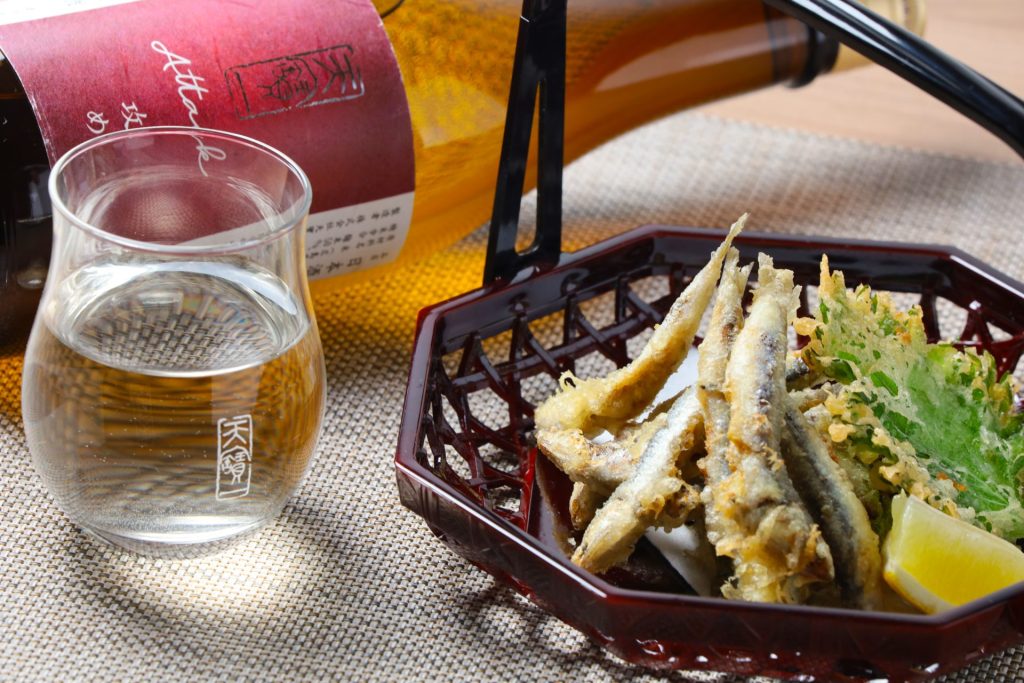 広島ではよく食べられる「小鰯(こいわし)」の天ぷらと天寶一のマリアージュをお楽しみください。