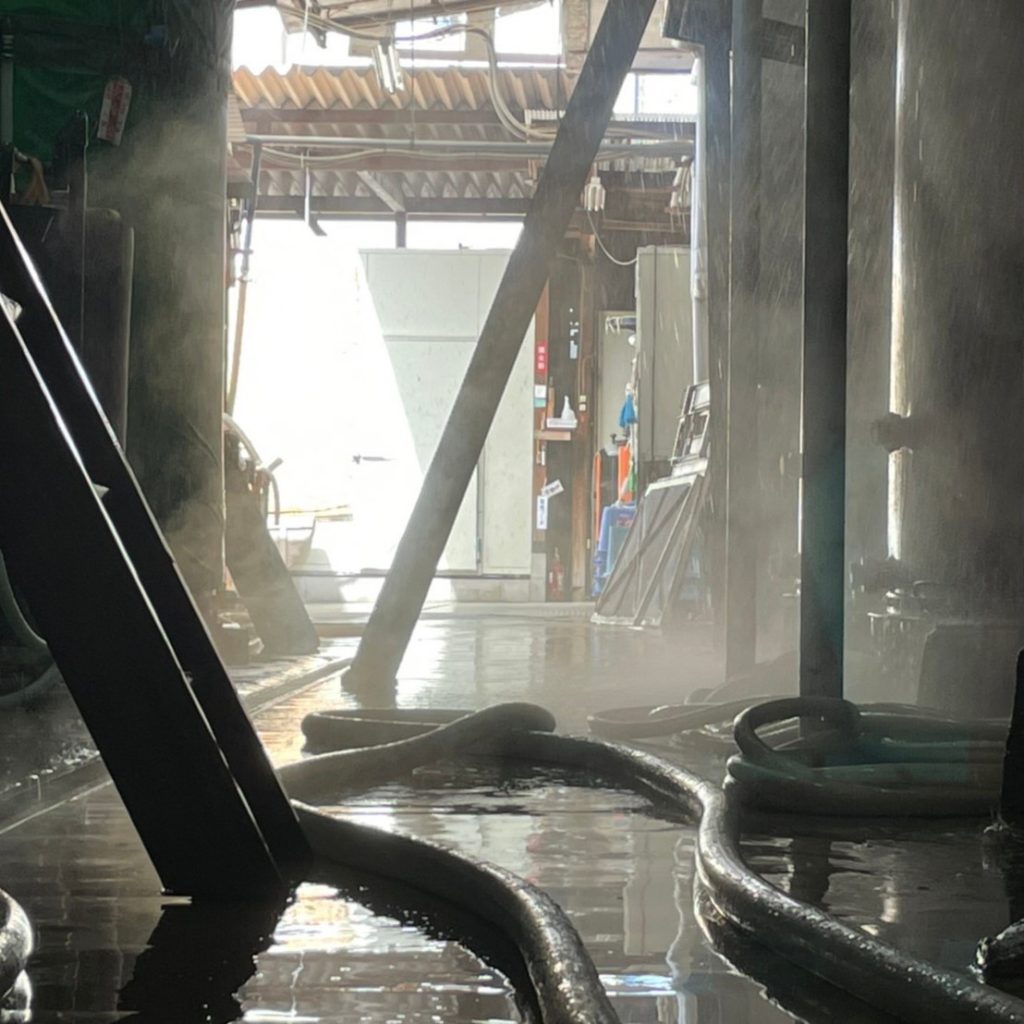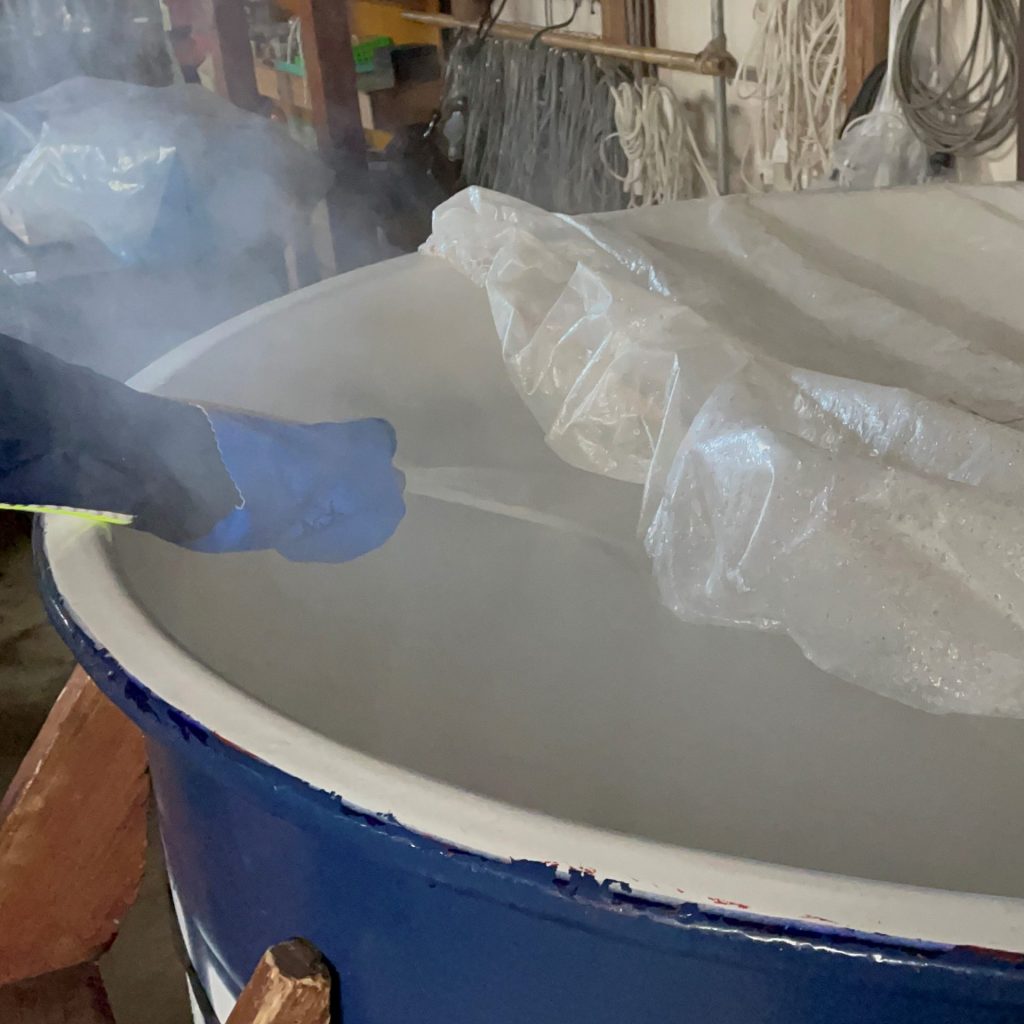 熱湯を使用するので蒸気も熱くサウナ状態!撮影させてもらった私もものすごい熱気を感じました。