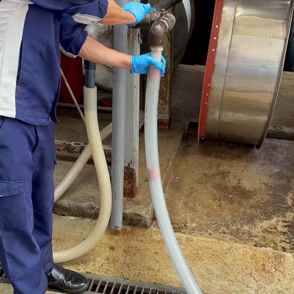■お酒やもろみを移動する際に使用するホースの洗浄
