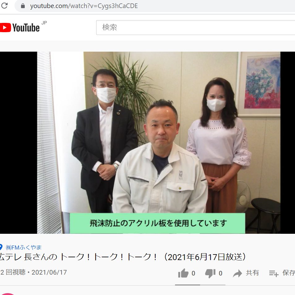 弊社社長が6月17日(木)18:40~エフエム福山『広テレ長さんのトーク!トーク!トーク!』という約10分のコーナーに出演させていただきます。