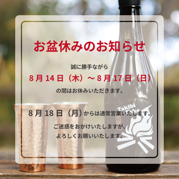 お盆休みのお知らせ2025 2025年8月1日 誠に勝手ながら 8月14日(木)~8月17日(日) の間はお休みいただきます。 ご迷惑をおかけいたしますが、よろしくお願いいたします。 8月18日(月)からは通常営業いたします。