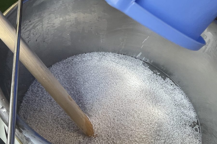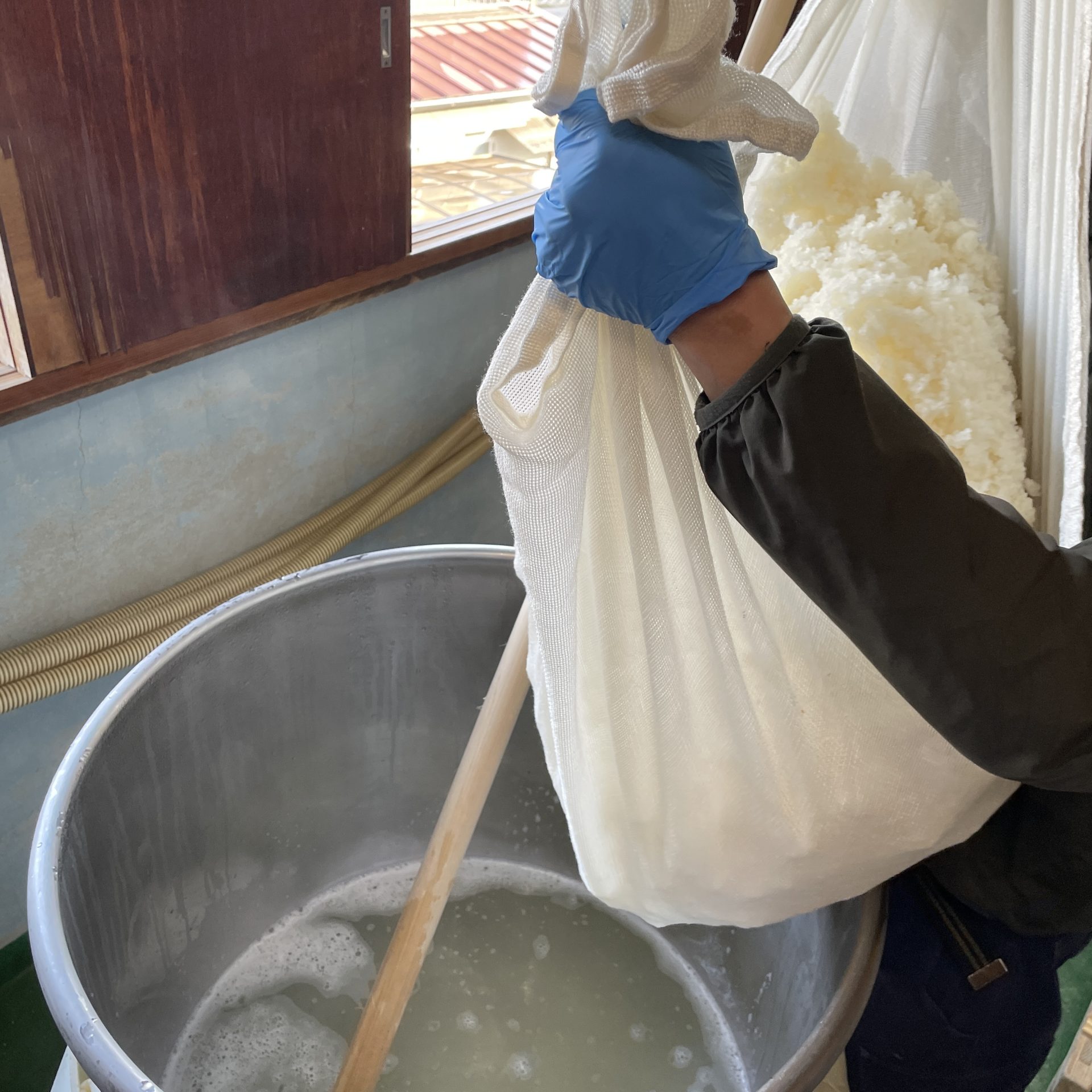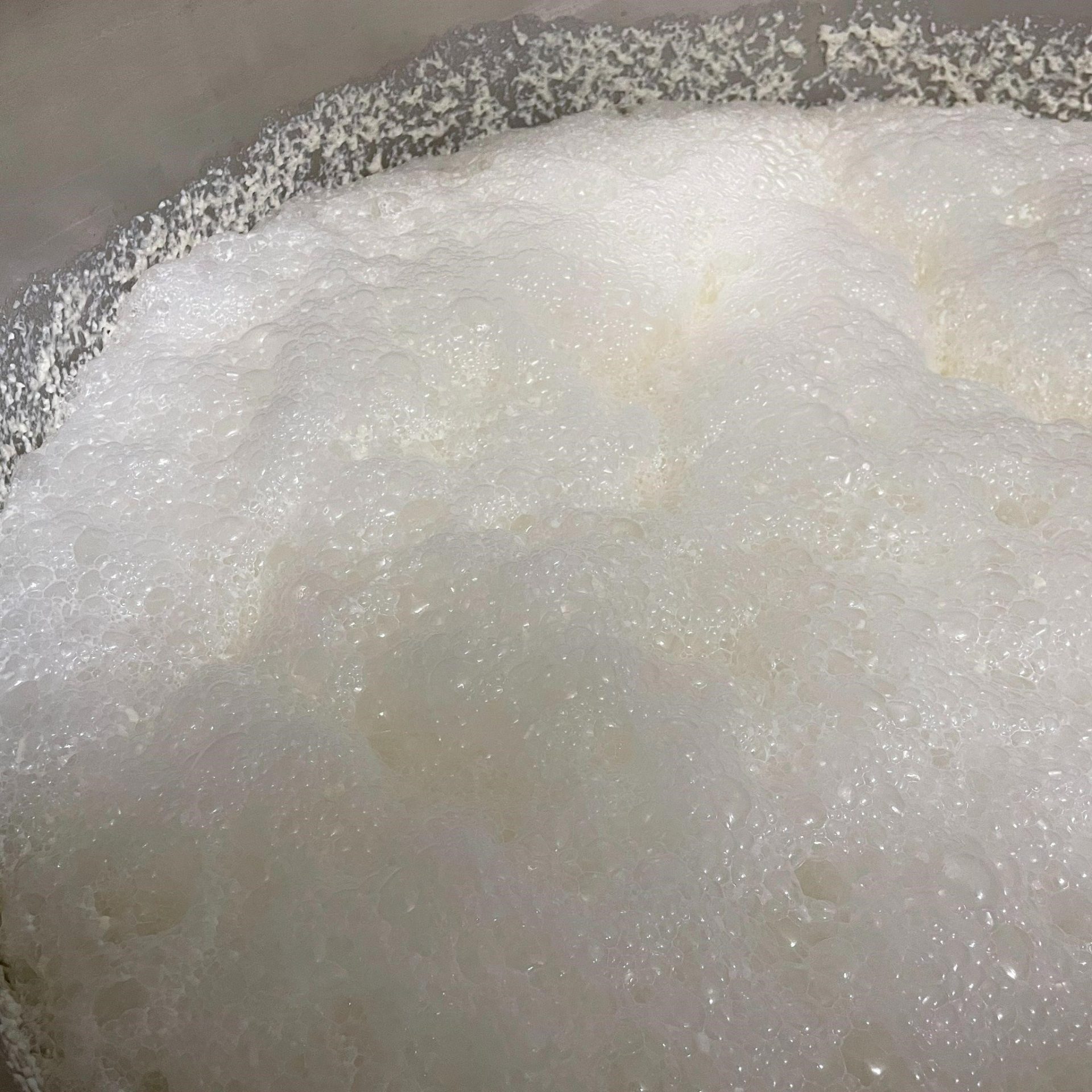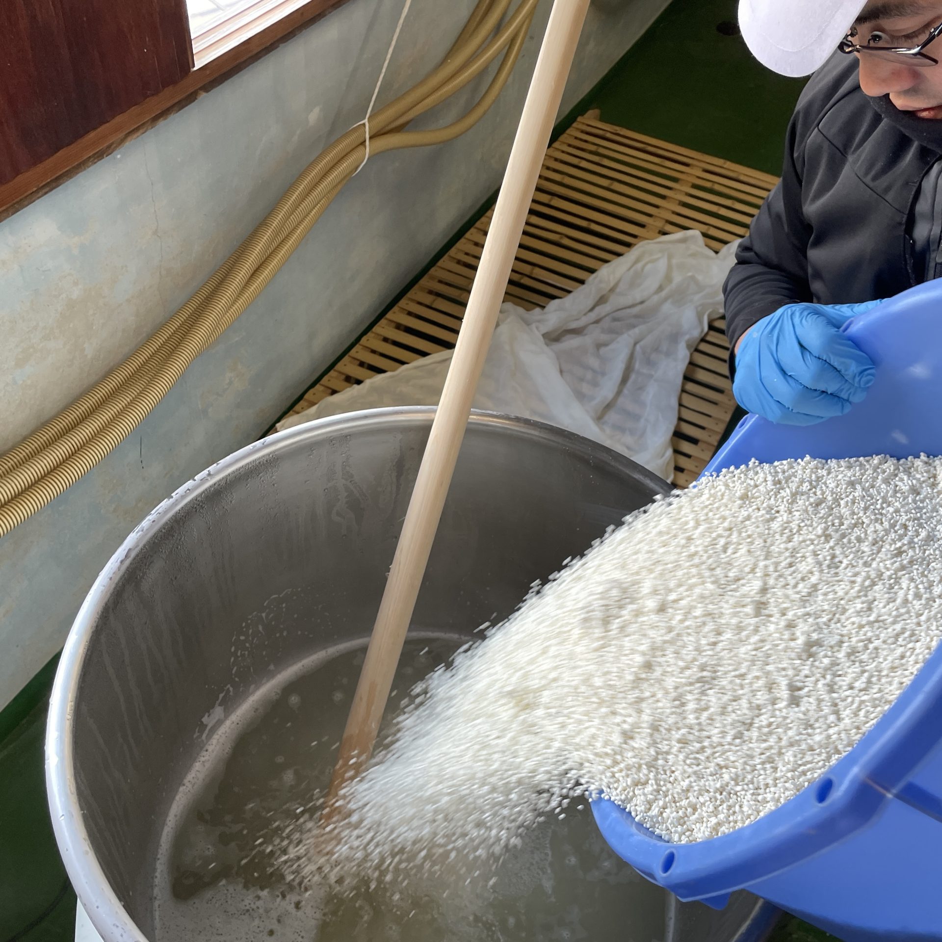 酒造りの風景「酒母造り」 ——— 酒造りの工程「酒母造り」 ——— 「酒」の「母」と書くように日本酒を生み出す元を造る工程 酒母は「酒」の「母」と書くように日本酒を生み出す元となるものです。このページでは、日本酒造りの工程のひとつ「酒母(しゅぼ)造り」についてご説明します。 麹からブドウ糖を生成し大量な優良酵母を育てる事が役割。 酒母を造る目的として、アルコール発酵というよりも、麹からブドウ糖を生成し大量な優良酵母を育てる事が役割です。酒母は古くから酛(もと)と呼ばれています。酛という字を分解すると「酒」の「元」となるように日本酒を生み出す源という意味です。日本酒造りの工程には「一麹、二酛、三造り」という言葉があり、酒母造りが重要なプロセスです。まず一麹とあるように蒸米をもとに麹菌を培養。二酛(酒母造り)で蒸米と麹をもとに酵母菌を大量に培養します。最後が三造りで培養された酒母と蒸米と麹、仕込み水をいれて糖化と発酵を同時に行い約30日で上槽(搾り)を行います。さらに酒母に含まれる酸の種類や量によっても味わいが変わるように酒母造りが日本酒の品質を大きく左右するのです。 酒母造りのタイブ「生酛(きもと)」 酒母の造り方の内、生酛系は自然界に存在する天然の乳酸菌を取り込んで育てるものです。江戸時代に確立された伝統的な製法で非常に手間がかかり完成まで約1カ月もの時間を要します。中でも負担が大きいのが、でんぷんの糖化や乳酸の生成を促すために、米をすり潰す「山卸」と呼ばれる作業をすることで多様な微生物と強靭な酵母が育ちます。仕込みの最後まで活発に発酵を行う為、濃醇でキレがよく豊かで複雑な味わいの日本酒が生まれます。天寶一では昔ながらの生酛製法にて2本造っております。 酒母造りのタイブ「速醸(そくじょう)」 近年では速醸系によって大幅な効率化が実現し現在ではこちらが主流となっています。速醸系の酒母造りは酵母と同時に人工の乳酸を添加する為、約2週間と生酛系より短期間で完成します。香りが立ちやすく味わいは軽く、さっぱりとした日本酒になる傾向があります。天寶一では中温速醸にて約1週間ほどで酒母を造っております。