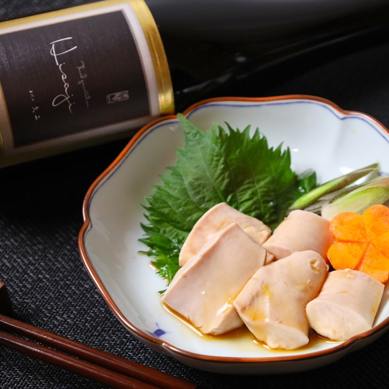 本日は白子ポン酢と生酛純米大吟醸「久二」のペアリングです。
